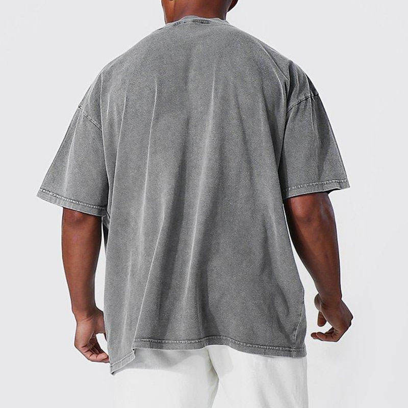 เสื้อยืดโอเวอร์ไซส์ Heavyweight ผ้าฝ้าย 100% พิมพ์ลายตามสั่ง สไตล์สตรีทแวร์ ล้างสีแบบ Acid Wash วินเทจ สำหรับผู้ชาย ปี 2026