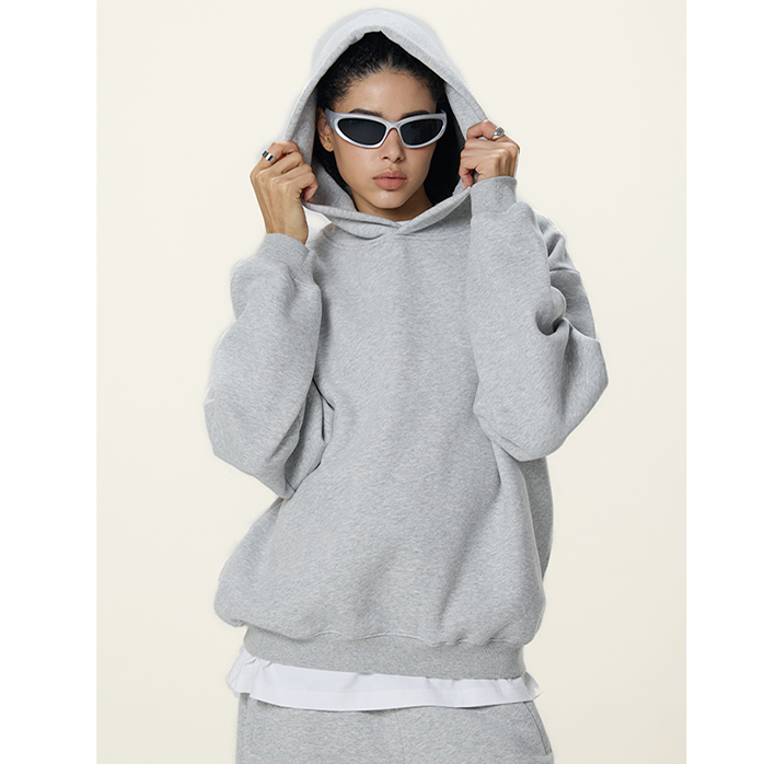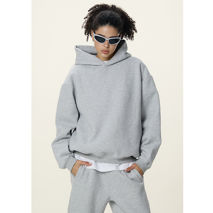 เสื้อมีฮู้ดผ้าหนาสำหรับผู้ชายเสื้อครอปทรงหลวมเปิดไหล่350Gsm