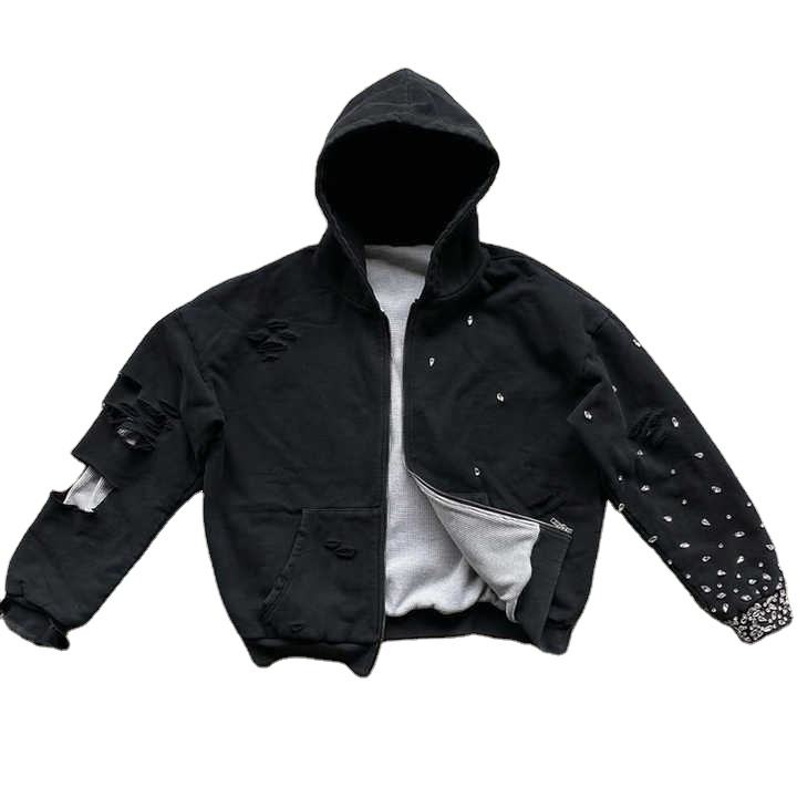 เสื้อมีฮู้ดเทอร์รี่ทำจากผ้าฝ้าย100% ได้420 460 500แกรมมีซิป Y2K พลอยเทียมโบราณ