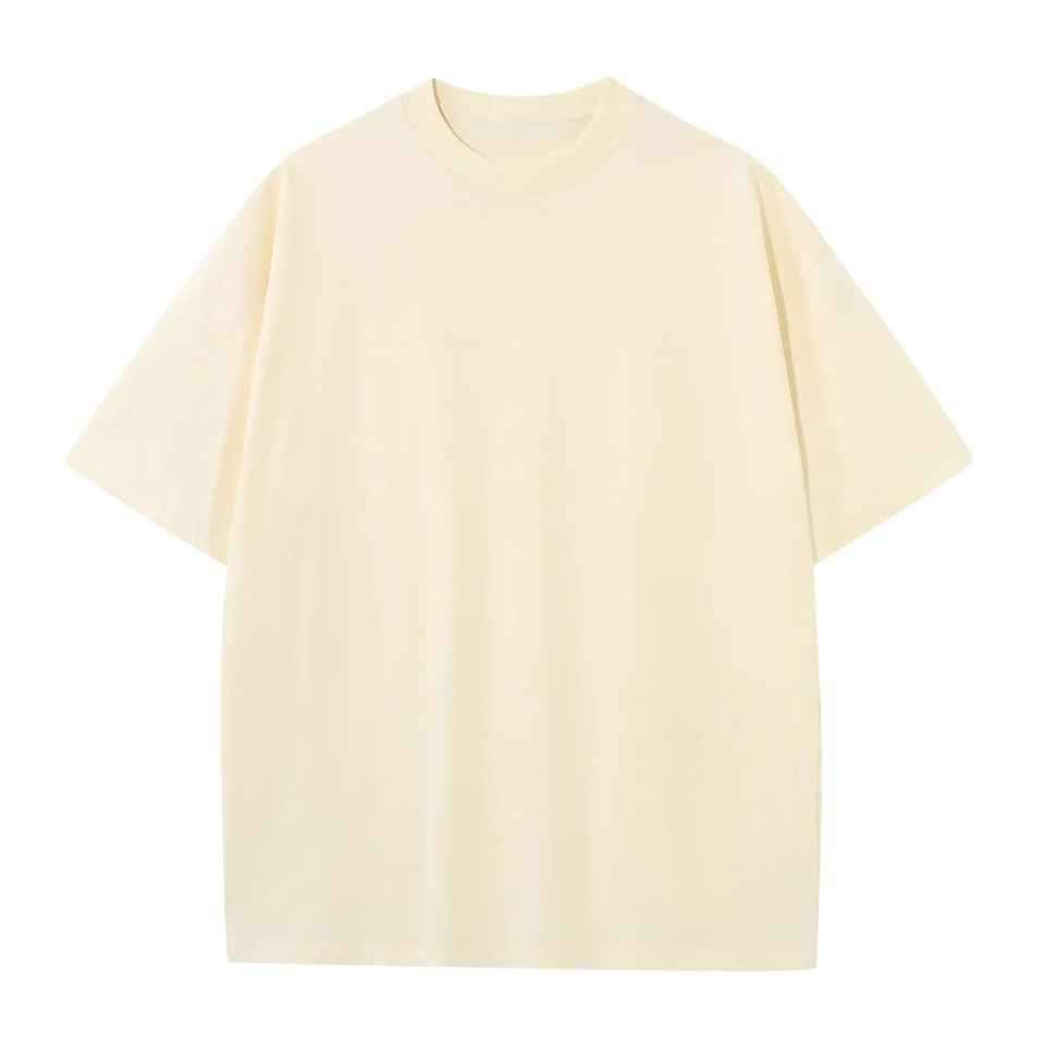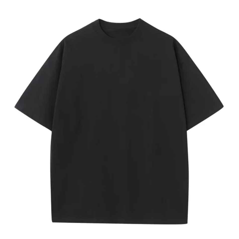 เสื้อยืด425GSM สำหรับผู้ชายเฮฟวี่เวตเสื้อยืดโอเวอร์ไซซ์ผ้าฝ้ายย้อมสีล้วนเปิดไหล่ปล่อย