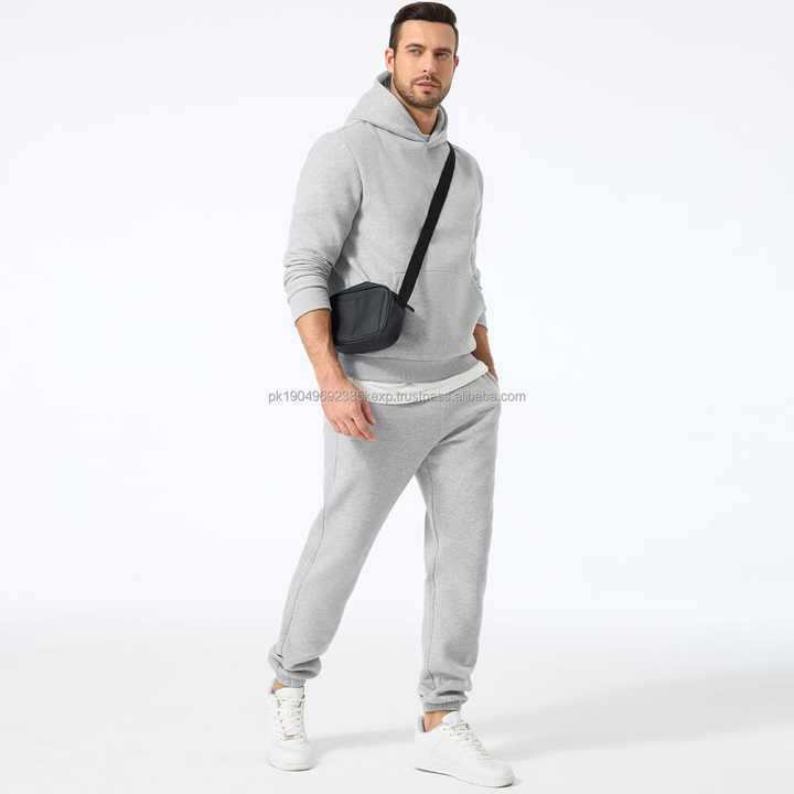 ชุดวอร์มผ้าฟลีซหนานุ่ม 500GSM สำหรับผู้ชาย พิมพ์ลายได้ตามต้องการ เสื้อฮู้ดซิป กางเกงจ็อกเกอร์ สีกรมท่า-เทา ดีไซน์บล็อกสี สำหรับฤดูหนาว