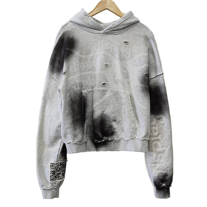 เสื้อฮู้ดดี้ทรงบ็อกซี่ ย้อมสีแบบแอซิดวอช สไตล์วินเทจ ขาดเซอร์ๆ ทรงโอเวอร์ไซส์ งานทำมือ ผ้าฟลีซ แนวสตรีทแวร์
