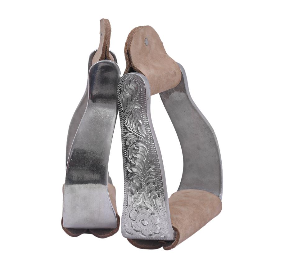 Heavyweight ที่ใช้ในการแสดงโกลนหนังอลูมิเนียมแข็งสลักรูปม้าแบบตะวันตกสำหรับผู้ใหญ่