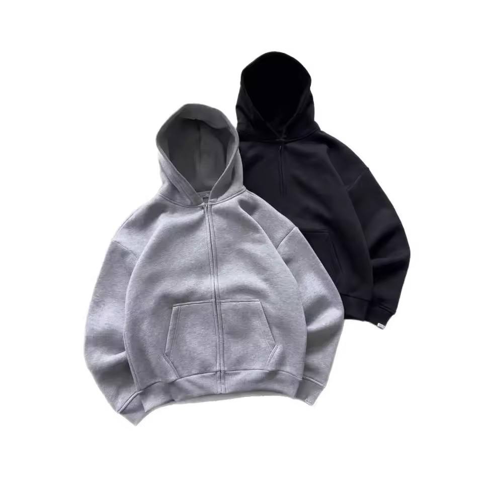 ชุดเซ็ตเสื้อฮู้ดดี้และกางเกงขายาวทรงหลวม 2 ชิ้น ผ้าหนา สำหรับผู้ชาย แบบสั่งทำพิเศษ เสื้อฮู้ดดี้ซิปใหญ่ ผู้ผลิตชุดวอร์มผู้ชาย