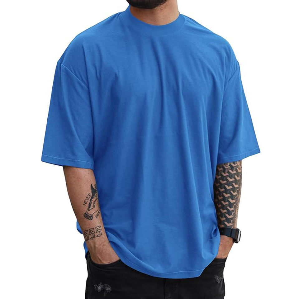 เสื้อยืดผ้าฝ้ายโอเวอร์ไซส์ผู้ชายผ้าคอตตอนคอมบ์พิมพ์ลายสีทึบพิมพ์ซับลิเมชัน