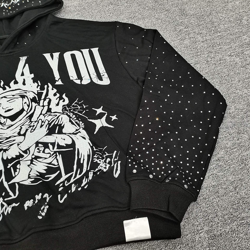เสื้อฮู้ดดี้ผ้าฝ้ายหนานุ่มสำหรับผู้ชาย สไตล์เกาหลี ประดับเพชรเทียม พรีเมียม รับสกรีนโลโก้ สตรีทแวร์