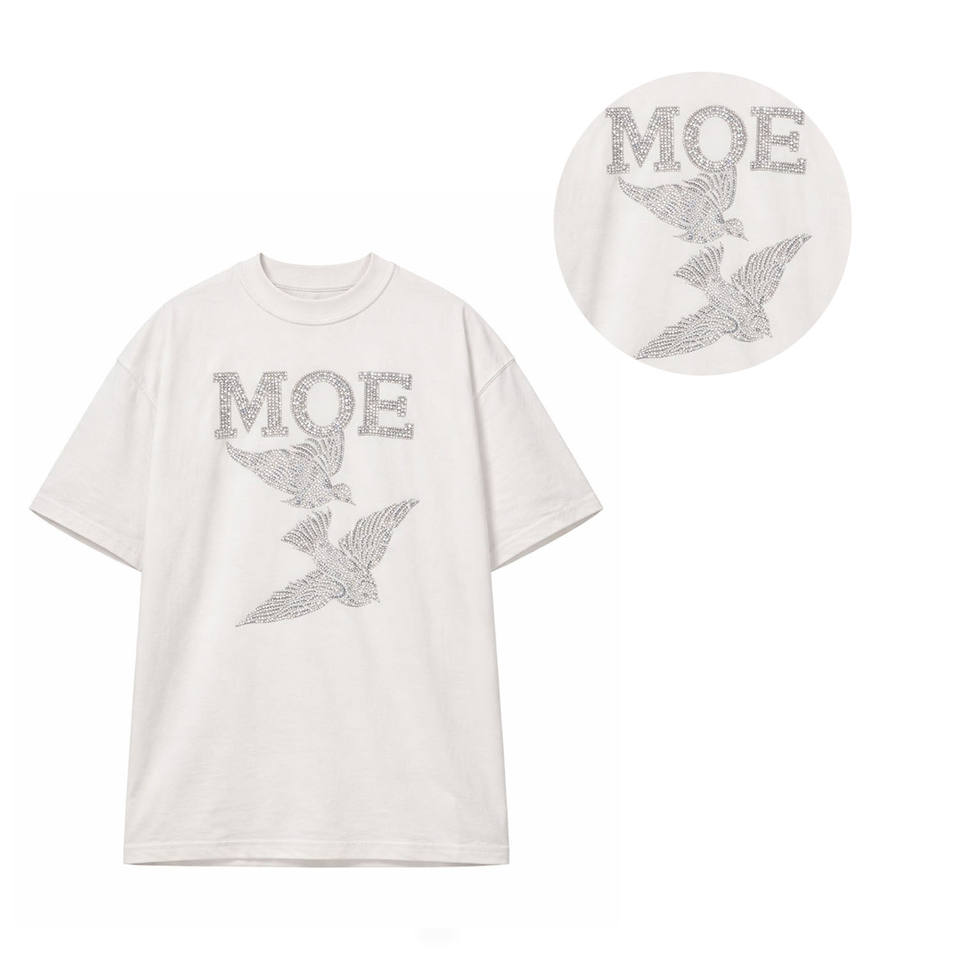 Heavyweight Cotton Men’s T-Shirt Oversized Rhinestone Crystal Letter Bird Design Streetwear OEM Private Label Bulk Production