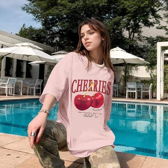 เสื้อยืดโอเวอร์ไซส์ผ้าคอตตอนหนานุ่มสไตล์วินเทจ ล้างสีแบบแอซิดวอช พิมพ์ลายกราฟิก สำหรับผู้หญิง