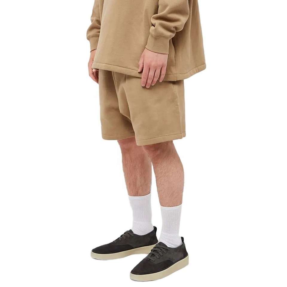 กางเกงขาสั้นผ้าฝ้ายโพลีเอสเตอร์ขนแกะไม่มีลายออกแบบโลโก้ได้ตามต้องการ