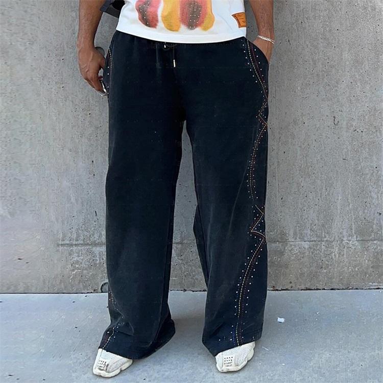 กางเกงวอร์มขาตรงสำหรับผู้ชายโอเวอร์ไซส์ผ้าคอตตอนไซส์ใหญ่พิเศษออกแบบได้ตามต้องการพลอยเทียมวินเทจซักได้ทรงหลวม