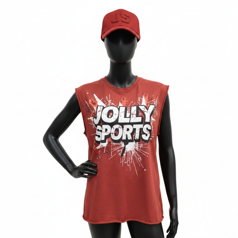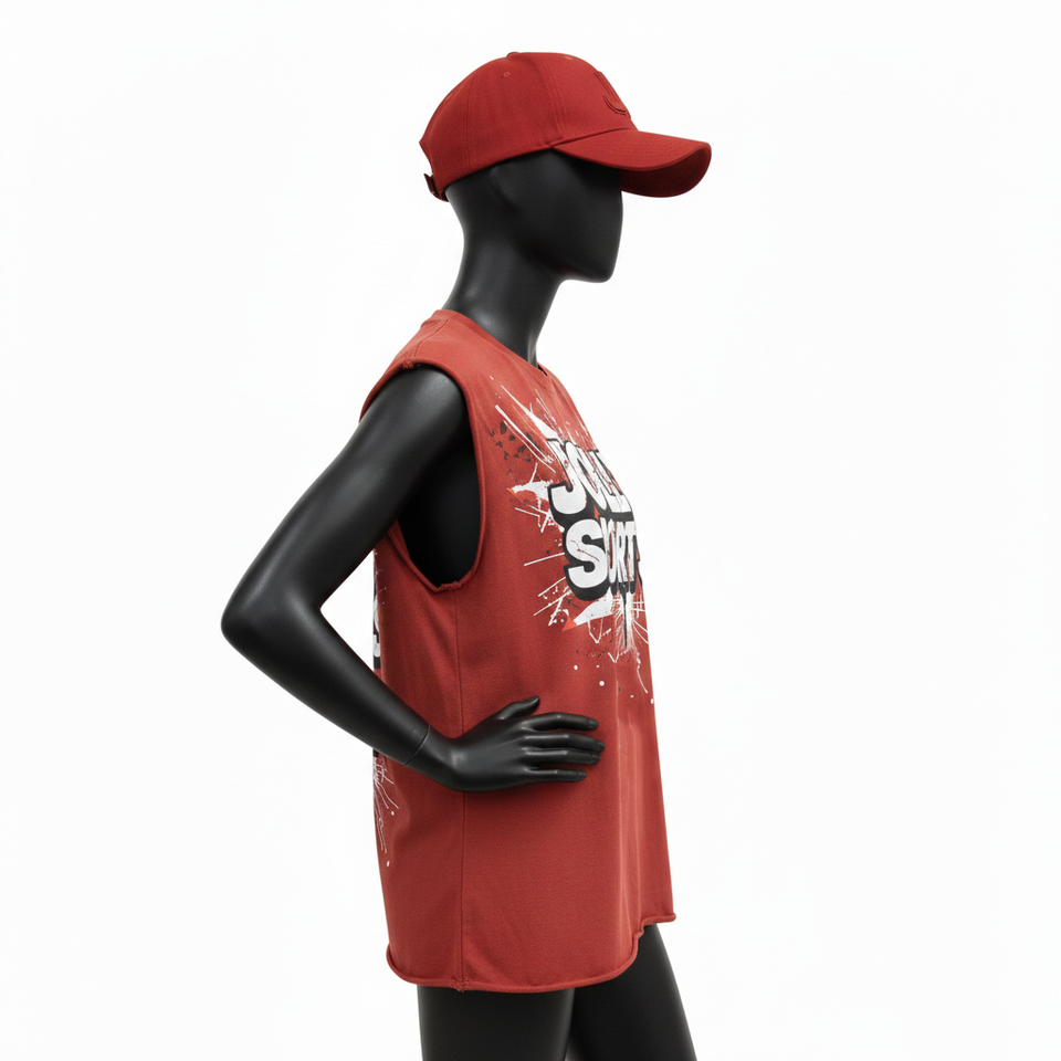 เสื้อกล้ามกีฬาผ้าฝ้ายหนาน้ำหนักมากสำหรับผู้หญิง สีแดง สไตล์สตรีท พิมพ์ลายกราฟิกโลโก้ เสื้อกล้ามผ้าฝ้ายสำหรับผู้หญิง