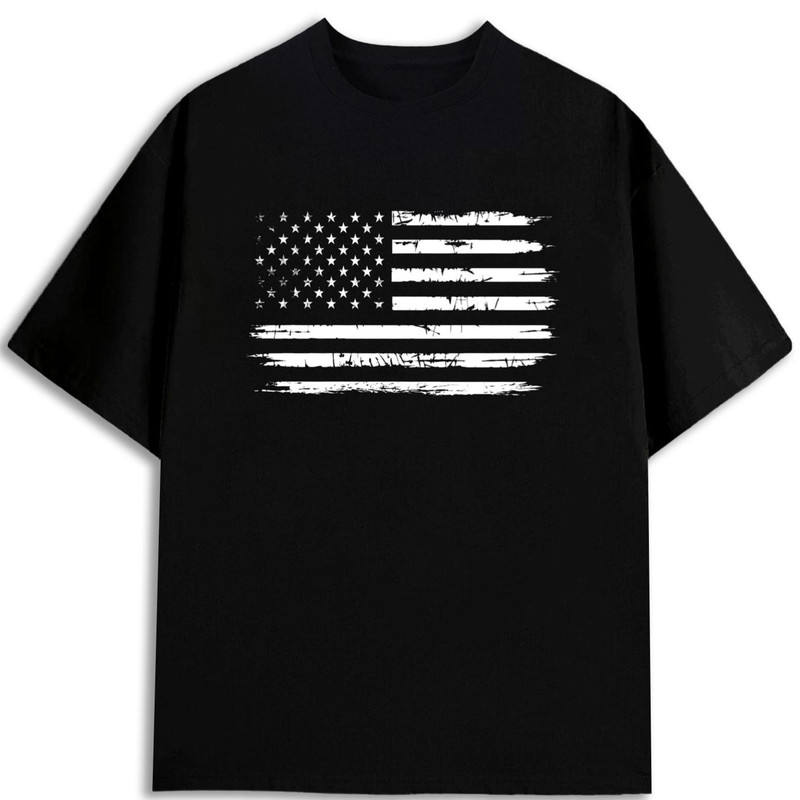เสื้อยืดคอกลมหนาน้ำหนักมากสำหรับผู้ชาย 180GSM ผ้าฝ้าย 100 เปอร์เซ็นต์ พิมพ์ลายธงชาติอเมริกัน จัดส่งจากคลังสินค้าของเรา