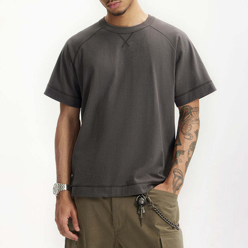เสื้อยืดแขนสั้นทรงครอป คอตตอน แขนเสื้อแบบแร็กแลน ดีไซน์ X คอเสื้อแบบคอกลม สำหรับผู้ชาย