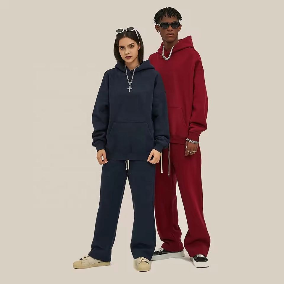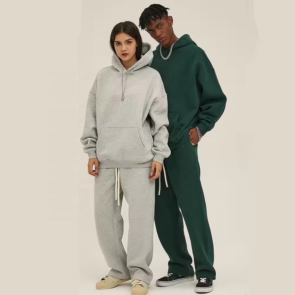 ชุดวอร์มผ้าฟลีซถักมีฮู้ดและกางเกงวอร์มพิมพ์ลาย