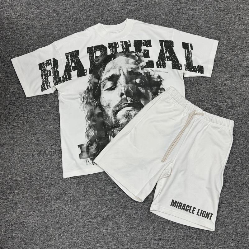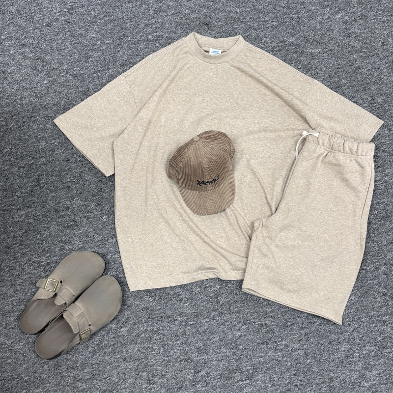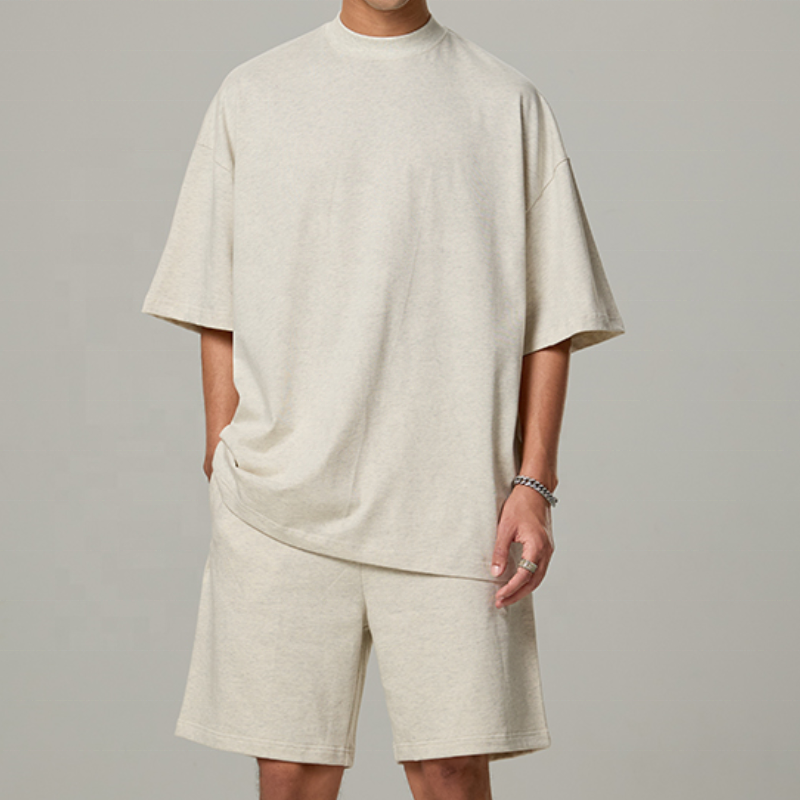 เสื้อยืดแขนสั้นสีพื้นผ้าฝ้าย 100% ไซส์ใหญ่พิเศษสำหรับผู้ชาย ชุดเซ็ต 2 ชิ้น กางเกงขาสั้น แห้งเร็ว ระบายอากาศได้ดี