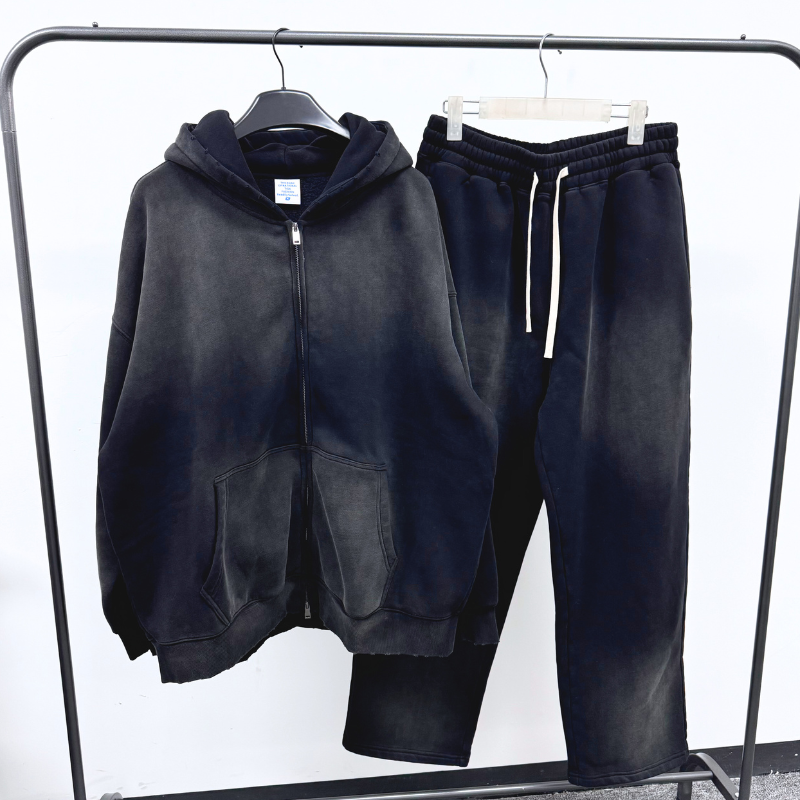 เสื้อฮู้ดมีซิปโอเวอร์ไซส์สำหรับผู้ชายผ้าฟลีซสีพื้นสไตล์สตรีทแวร์ผ้าเปียกกรดวินเทจ