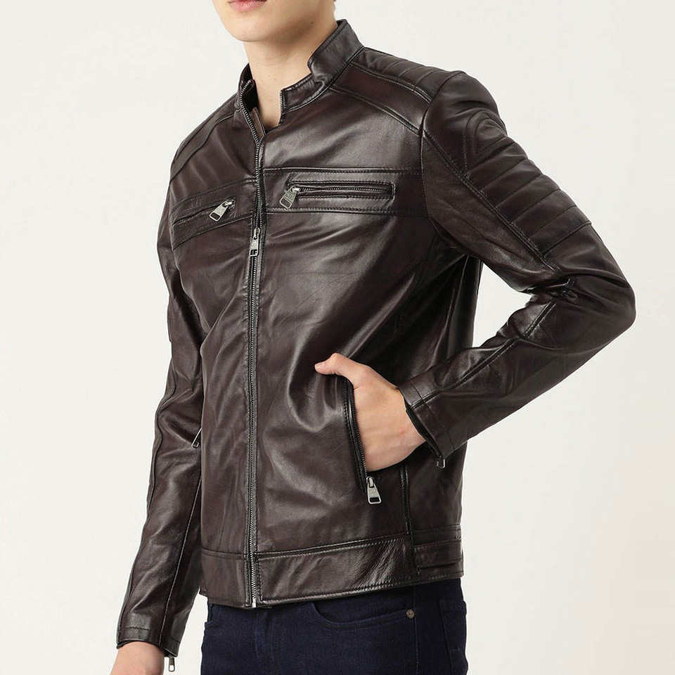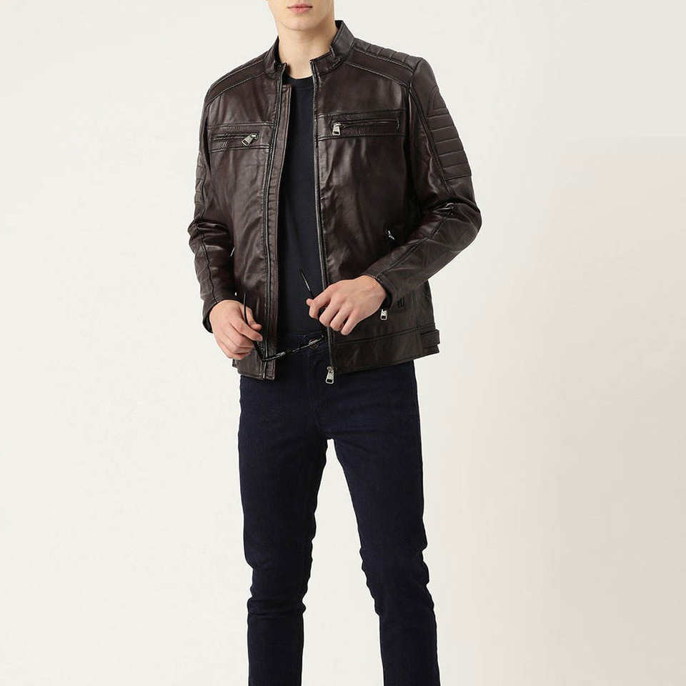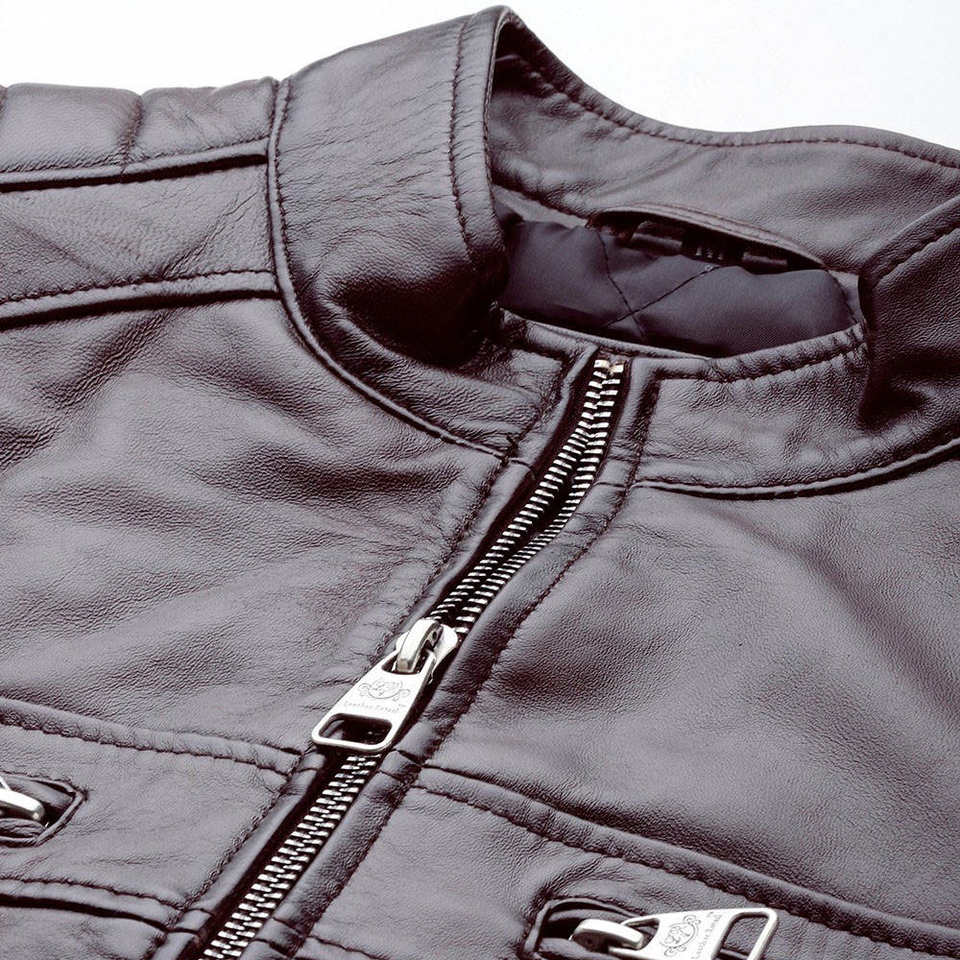แจ็คเก็ตหนังมอเตอร์ไซค์แบบคอตั้งเคลือบสีสั่งทำพิเศษ น้ำหนักเบา เป็นมิตรกับสิ่งแวดล้อม ดีไซน์โดดเด่น ราคาล่าสุด สำหรับผู้ชาย