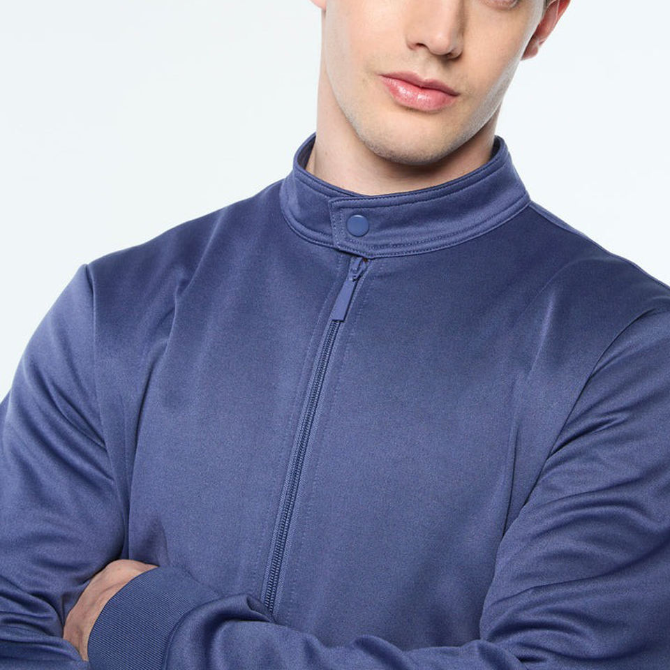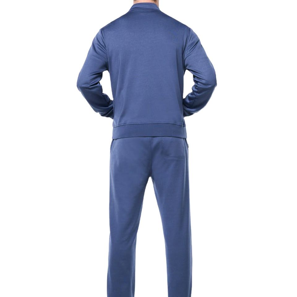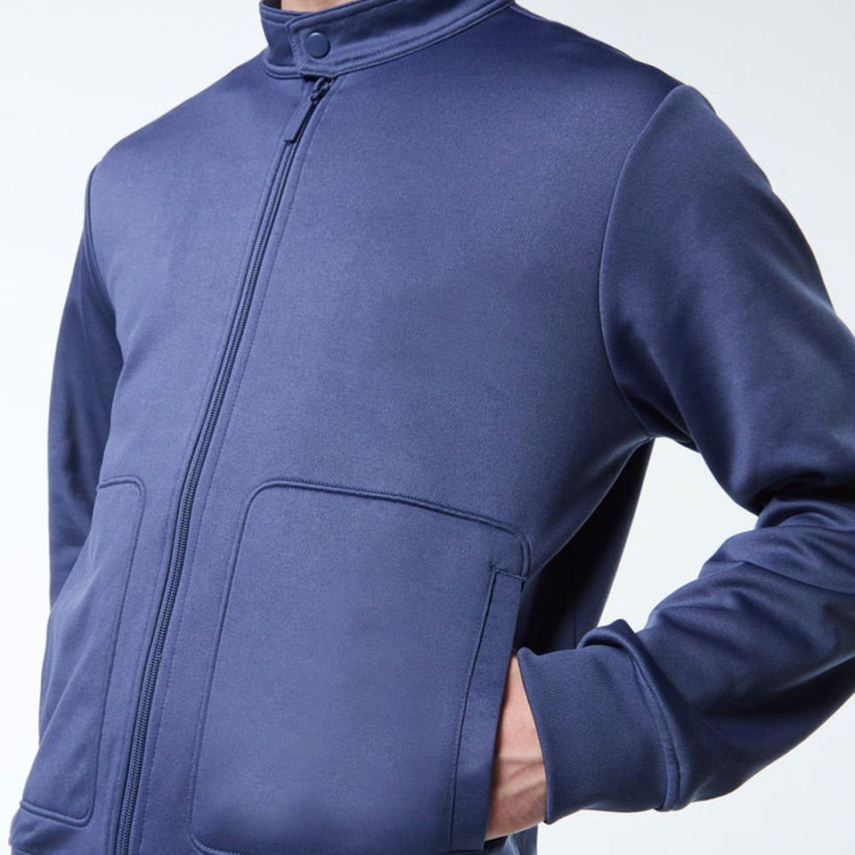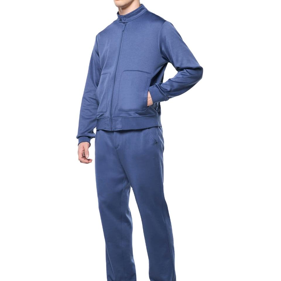 ชุดวอร์มผู้ชายแบบสองชิ้น ผ้าไนลอนโพลีเอสเตอร์ ยืดหยุ่นได้ สกรีนโลโก้ตามสั่ง ซิปเต็มตัว มีกระเป๋า สำหรับใส่ลำลอง