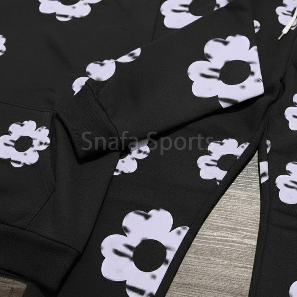 ชุดวอร์มเดนิมหนานุ่มสำหรับผู้ชาย ชุดลำลองฤดูหนาวแบบมีฮู้ดพร้อมกระเป๋าข้าง สไตล์สตรีทแวร์
