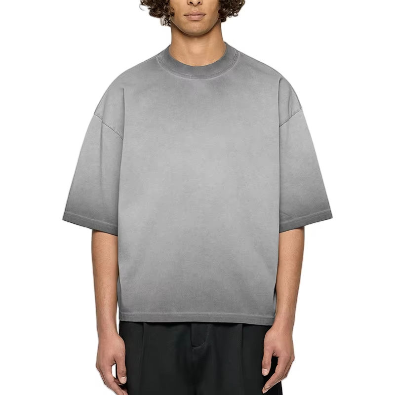 เสื้อยืดทรงบ็อกซี่ แขนเสื้อแบบดรอปโชว์เดอร์ ผ้าเฟรนช์เทอร์รี่ ย้อมสีแบบแอซิดวอช ทรงโอเวอร์ไซส์ ตัดเย็บพิเศษสำหรับผู้ชาย