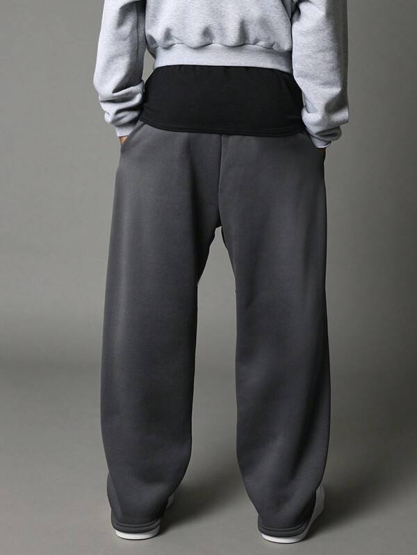 กางเกงวิ่งขนแกะเฮฟวี่เวทของผู้ชายกางเกงซักได้แบบทันสมัยใส่สบายขากว้างเสื้อผ้าแนวสตรีทแบบมีเชือกรูดเอวผ้าฝ้ายนุ่มใส่ด้านล่าง
