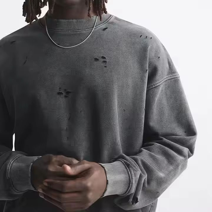 เสื้อสเวตเชิ้ตเฟรนช์เทอร์รี่หนานุ่มทรงโอเวอร์ไซส์สำหรับผู้ชาย สไตล์วินเทจฟอกสีแบบแอซิดวอช คอวี แบรนด์ Custom Haus Industries