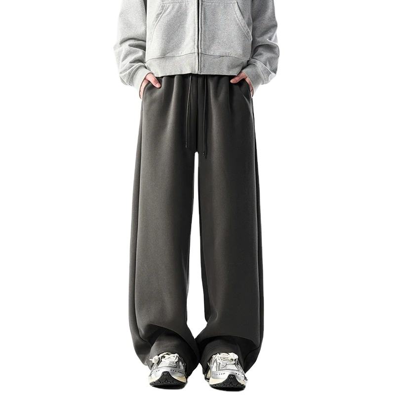 กางเกงขายาวทรงตรงผ้าหนาสำหรับผู้ชาย คอลเลคชั่นฤดูใบไม้ร่วง 2025 แฟชั่นใหม่ สไตล์ลำลอง สวมใส่สบาย ทรงหลวม เสื้อผ้าผู้ชาย