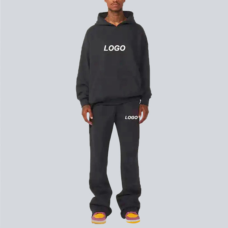 ชุดสตรีทแวร์ผู้ชายไซส์ใหญ่ สไตล์ลำลอง วินเทจ ลุคซักฟอก ชุดสเวตสูท พิมพ์ลายพองตัว ซับในผ้าซาติน เสื้อฮู้ด กางเกงขายาวทรงบาน รับผลิตแบบ OEM