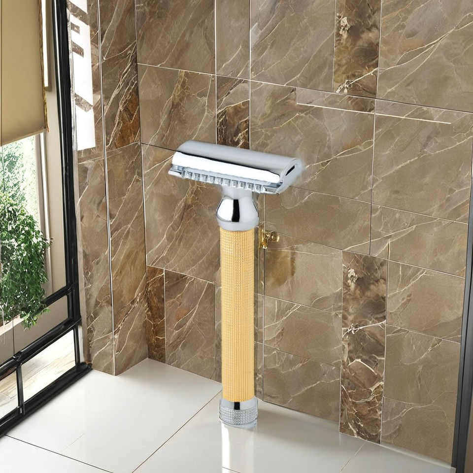 มีดโกนนิรภัยโลหะเฮฟวี่เวทพร้อมการออกแบบแบบดั้งเดิมที่สมบูรณ์แบบสำหรับการสัมผัสมุมใบมีดเรียบเนียน