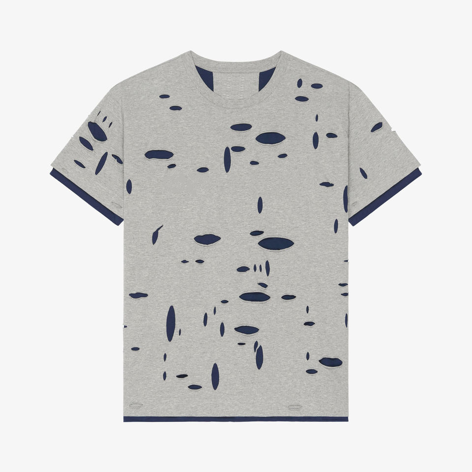 เสื้อยืดคอตตอนทรงโอเวอร์ไซส์สไตล์ดิสเทรสสำหรับผู้ชาย เนื้อผ้านุ่ม สวมใส่สบาย สไตล์สตรีทแวร์