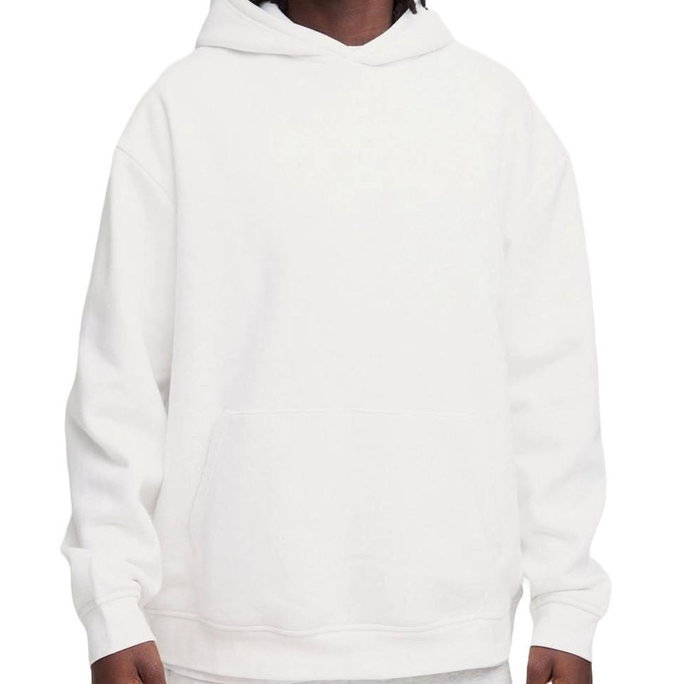 Heavyweight Oversized Plain Pullover Cotton Hoodies With Pocket Men's Causal Streetwear Solid Long Sleeves Hoodie In White Color