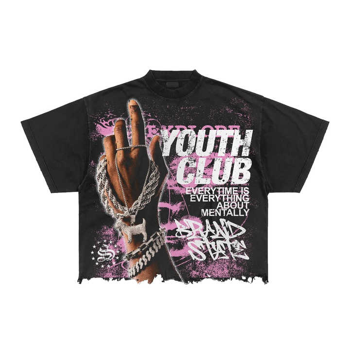 เสื้อยืดผู้ชายทรงหลวมเข้ารูปเฮมเนื้อผ้าฝ้าย100% พิมพ์ลาย DTG กางเกงขาสั้นมีแขนเสื้อสำหรับผู้ชาย