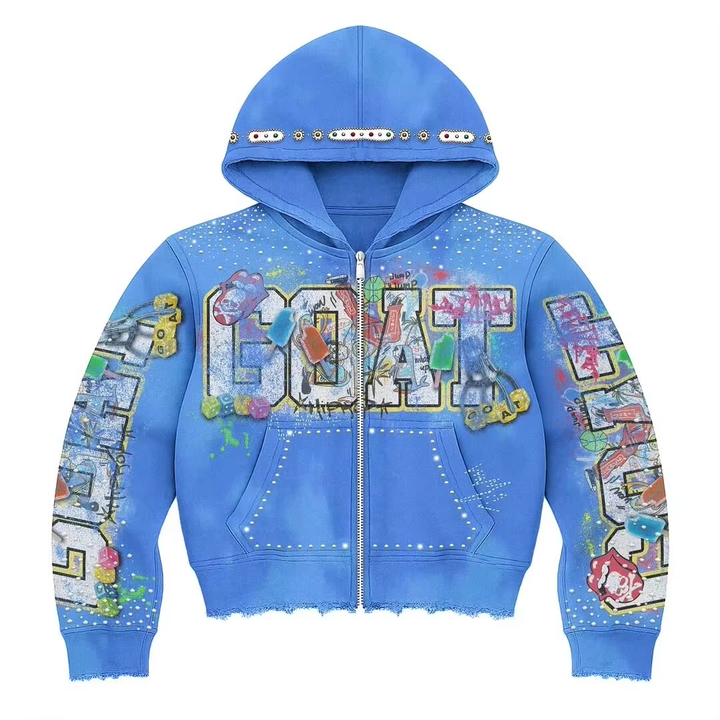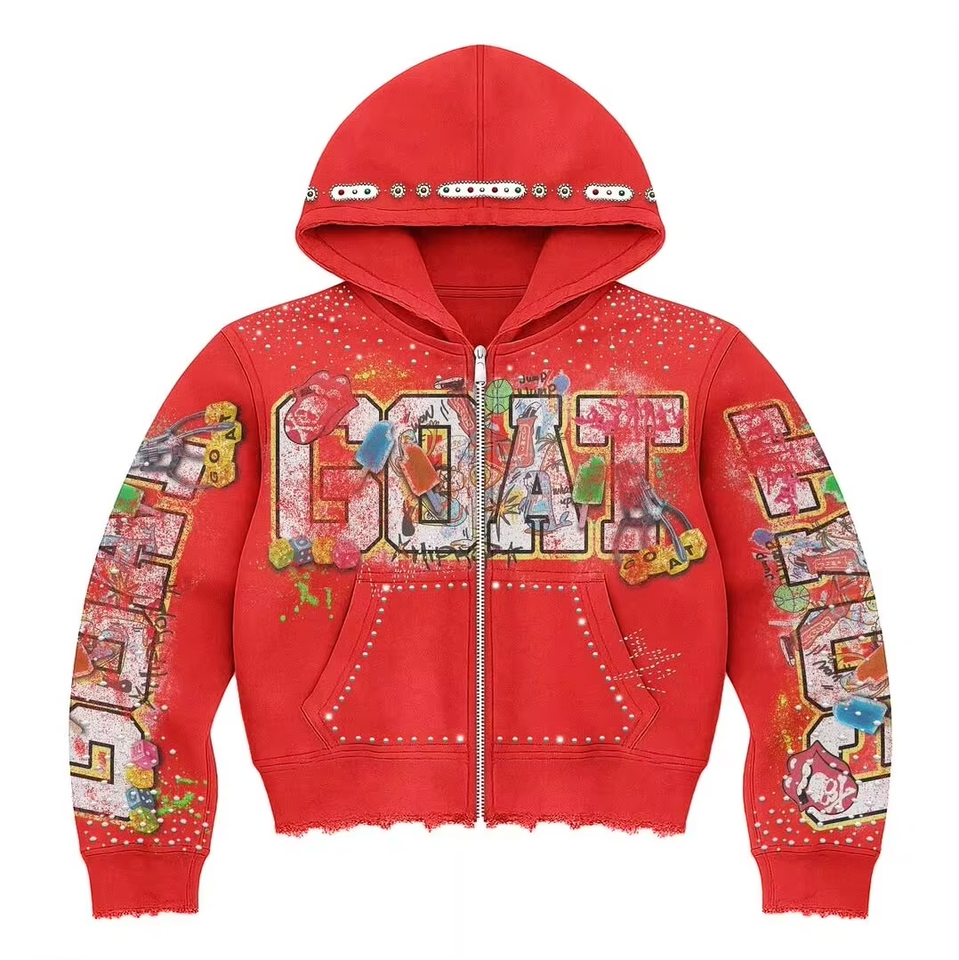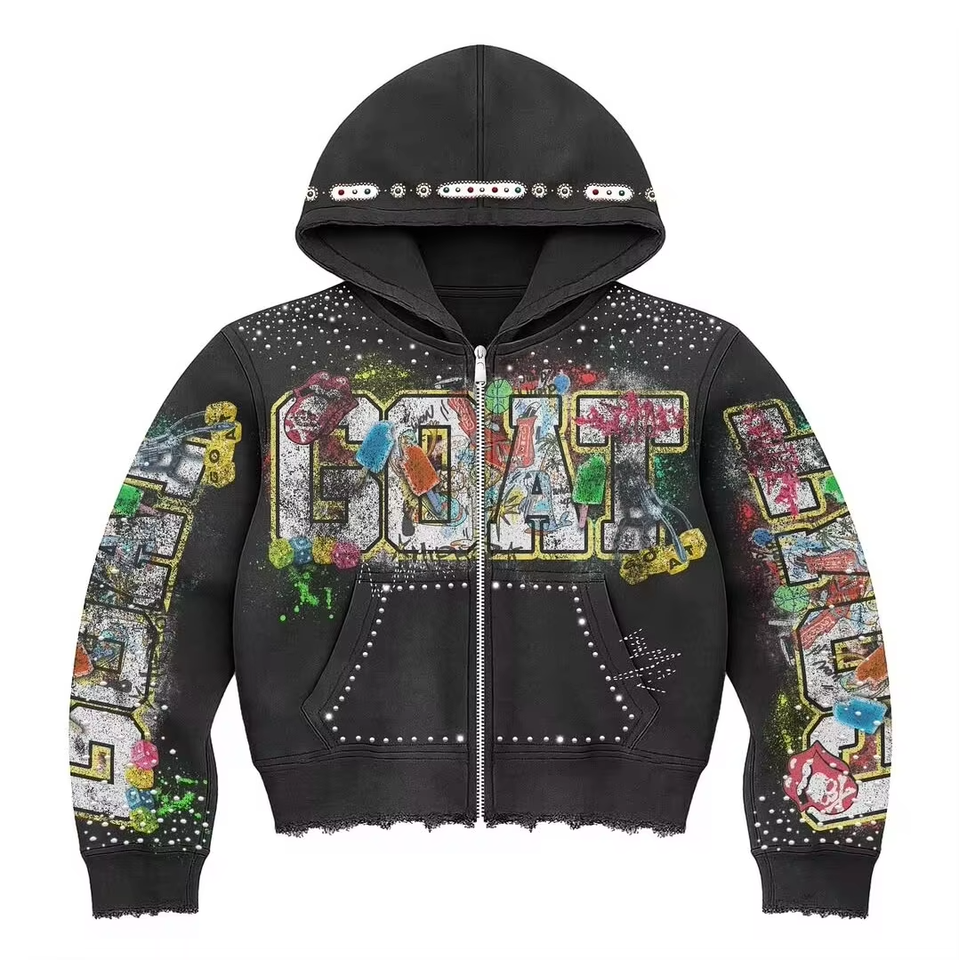 เสื้อมีฮู้ดแบบซิปรูดมีซิปสำหรับผู้ชายเสื้อมีฮู้ดสำหรับฤดูใบไม้ผลิฟอกสีกรดปรับแต่งได้2025