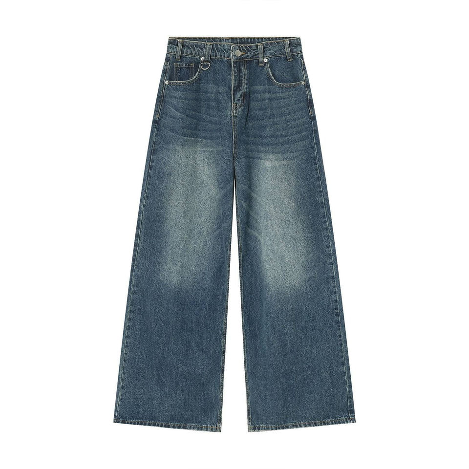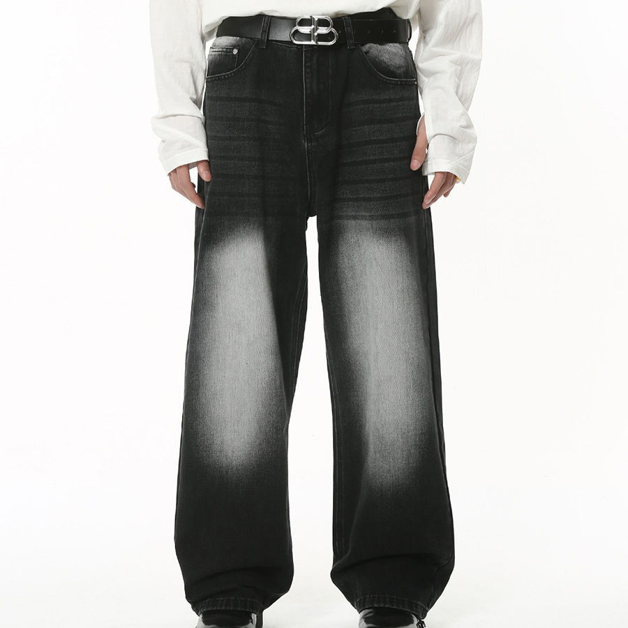 กางเกงยีนส์ทรงตรงขาบานสไตล์สตรีทแวร์สำหรับผู้ชาย ผ้าเดนิมคุณภาพสูงฟอกสีวินเทจแบบซันเฟด สามารถปรับแต่งได้