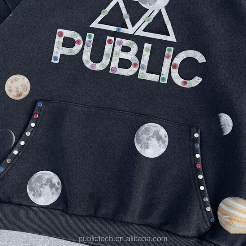 เสื้อฮู้ดดี้ผู้ชายทรงบ็อกซี่ สไตล์สตรีทแวร์ ผ้าฝ้าย 100% แต่งลายพิมพ์เต็มตัว แนววินเทจ ลุคดิสเทรส ประดับคริสตัล
