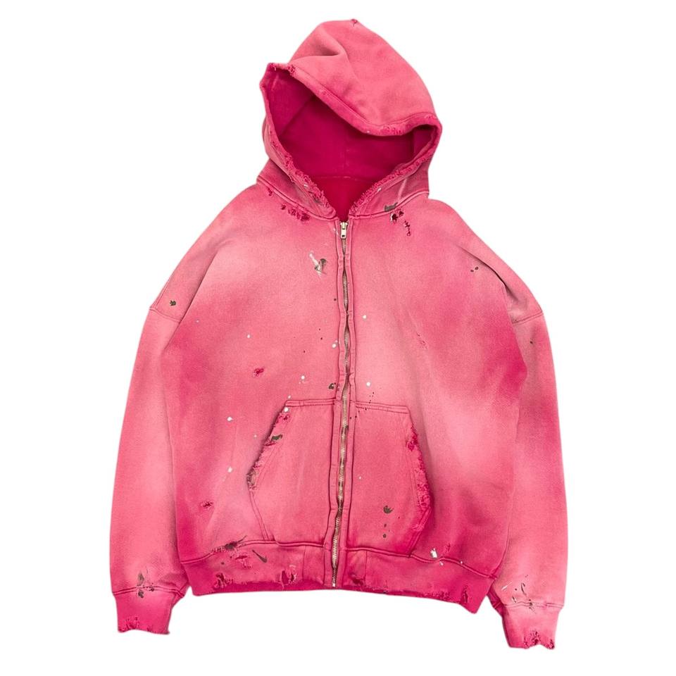 เสื้อฮู้ดดี้ผ้าฝ้ายฟลีซเนื้อหนักคุณภาพเยี่ยมสไตล์วินเทจ ล้างสีแบบแอซิดวอช พร้อมซิปสำหรับผู้ชาย แบบสั่งทำพิเศษ