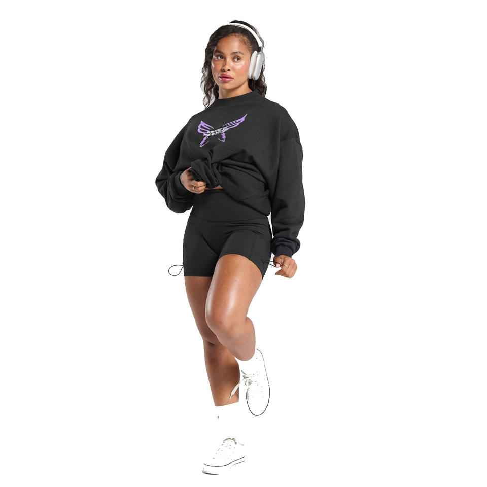 เสื้อสเวตเตอร์เฮฟวี่เวทของผู้หญิงคุณภาพสูงคอกลมลำลองแนวสตรีทแวร์พร้อมฮู้ดสกรีนลาย