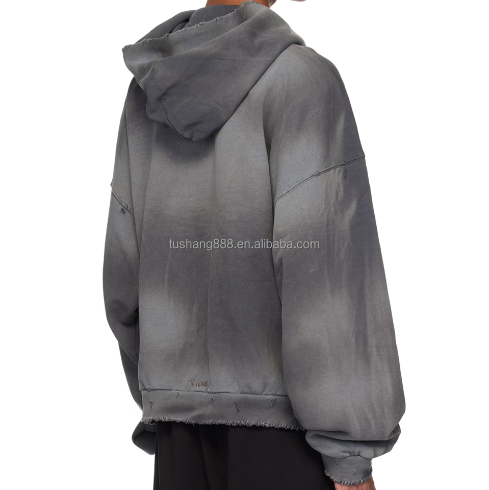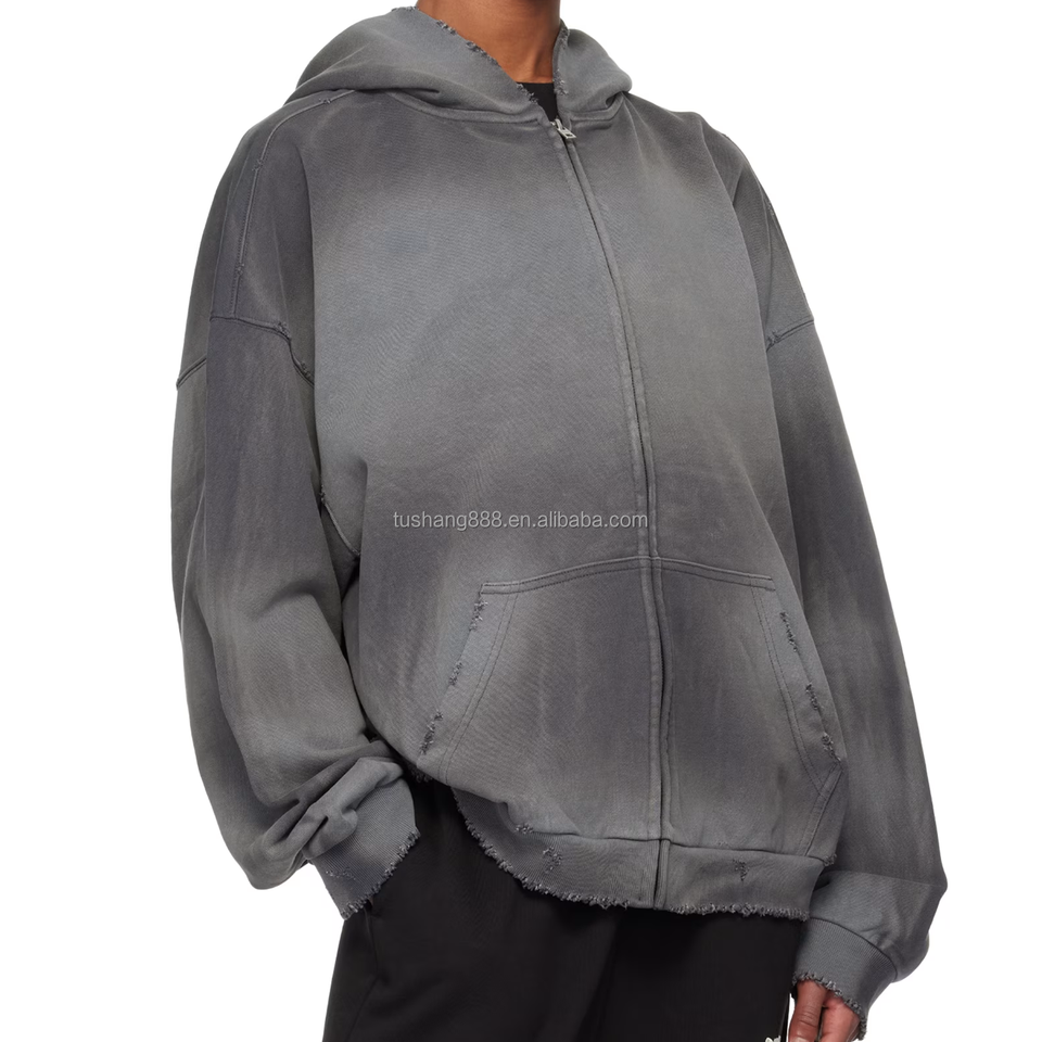 เสื้อครอปแบบมีซิปมีฮู้ดของผู้ชายผ้าคอตตอนผ้าซักแบบวินเทจ