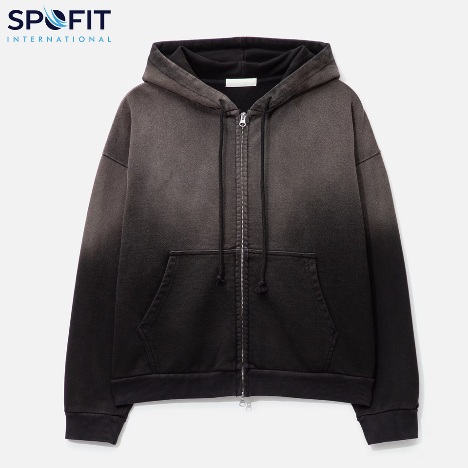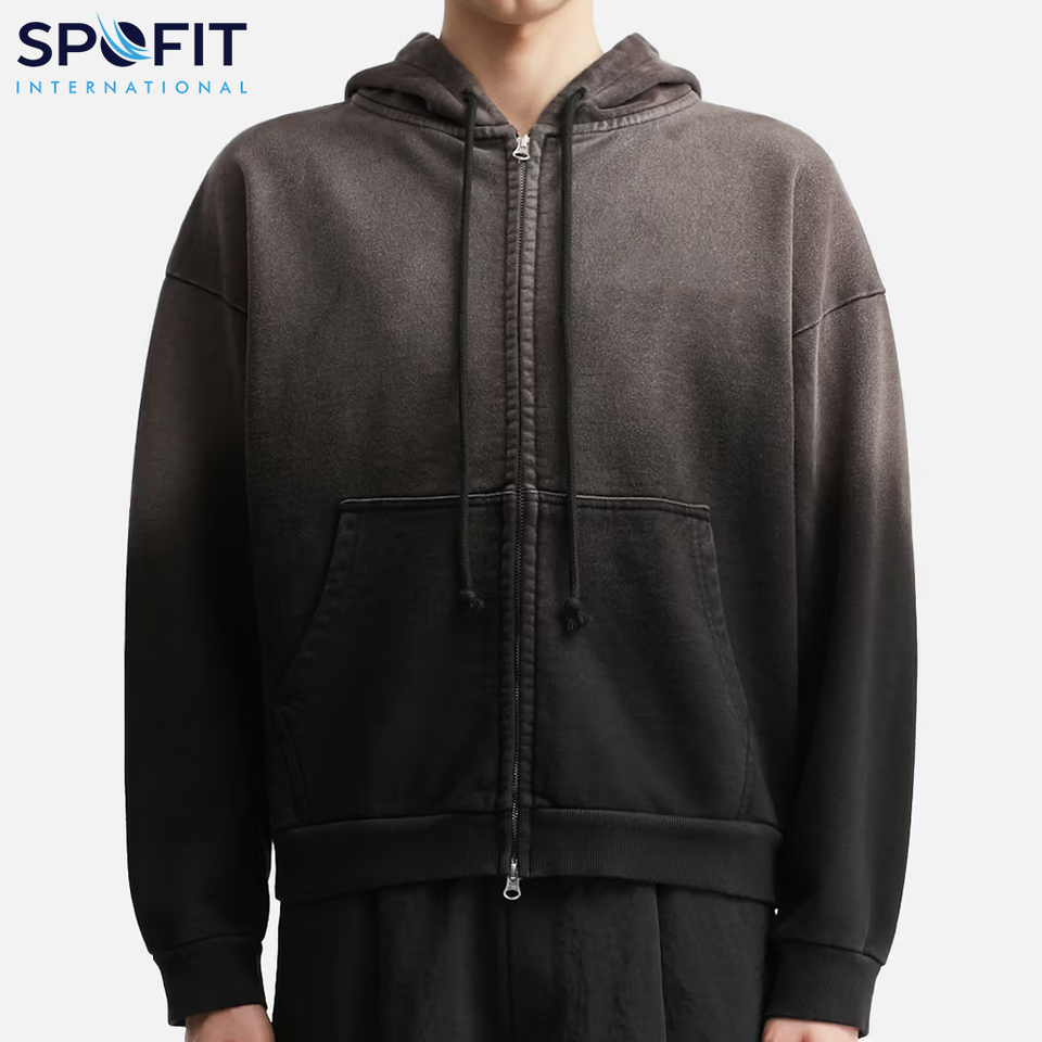 เสื้อฮู้ดฟอกสีสำหรับผู้ชายผ้าฝ้ายฝรั่งเศสคุณภาพสูงเสื้อมีซิปสองทาง