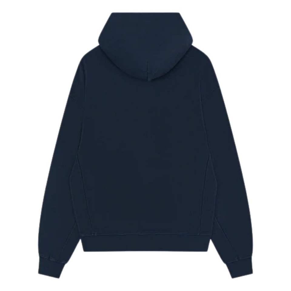 เสื้อฮู้ดดี้เนื้อผ้าริบบ์แบบหนา สีกรมท่า แขนยาว ผ้าฝ้ายนุ่ม สวมใส่สบาย สไตล์ลำลองสำหรับผู้ชาย ทรงพอดีตัว คุณภาพพรีเมียม