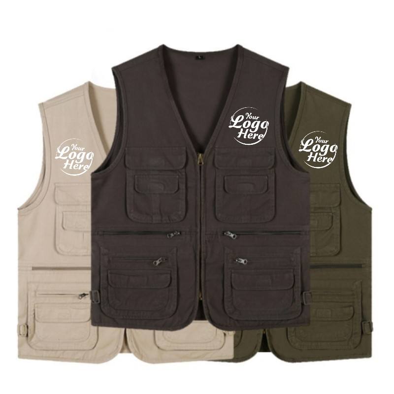 เสื้อกั๊กทำงานผ้าฝ้ายแท้เนื้อหนา ระบายอากาศได้ดี ไม่หดตัว มีกระเป๋าหลายช่อง เหมาะสำหรับถ่ายภาพ รับสกรีนโลโก้ตามสั่ง สำหรับผู้ชาย