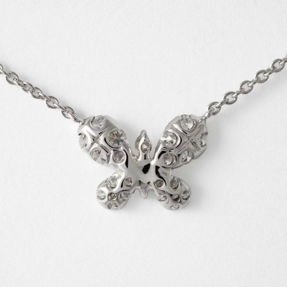 สร้อยคอจี้รูปผีเสื้อ Hecza Jewels ทองคำขาว 14K เพชรเพาะเลี้ยง 0.32 กะรัต ฝังแบบ Prong Set รับรองโดย IGI ดีไซน์หรูหราแบบมินิมอล