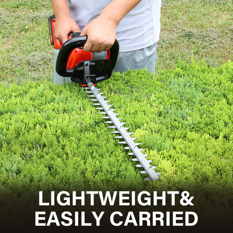 เครื่องตัดพุ่มไม้ไฟฟ้าไร้สายดีไซน์แบบไร้สายพร้อมมอเตอร์ไร้แปรงถ่านและแบตเตอรี่ชาร์จได้ยาวนาน