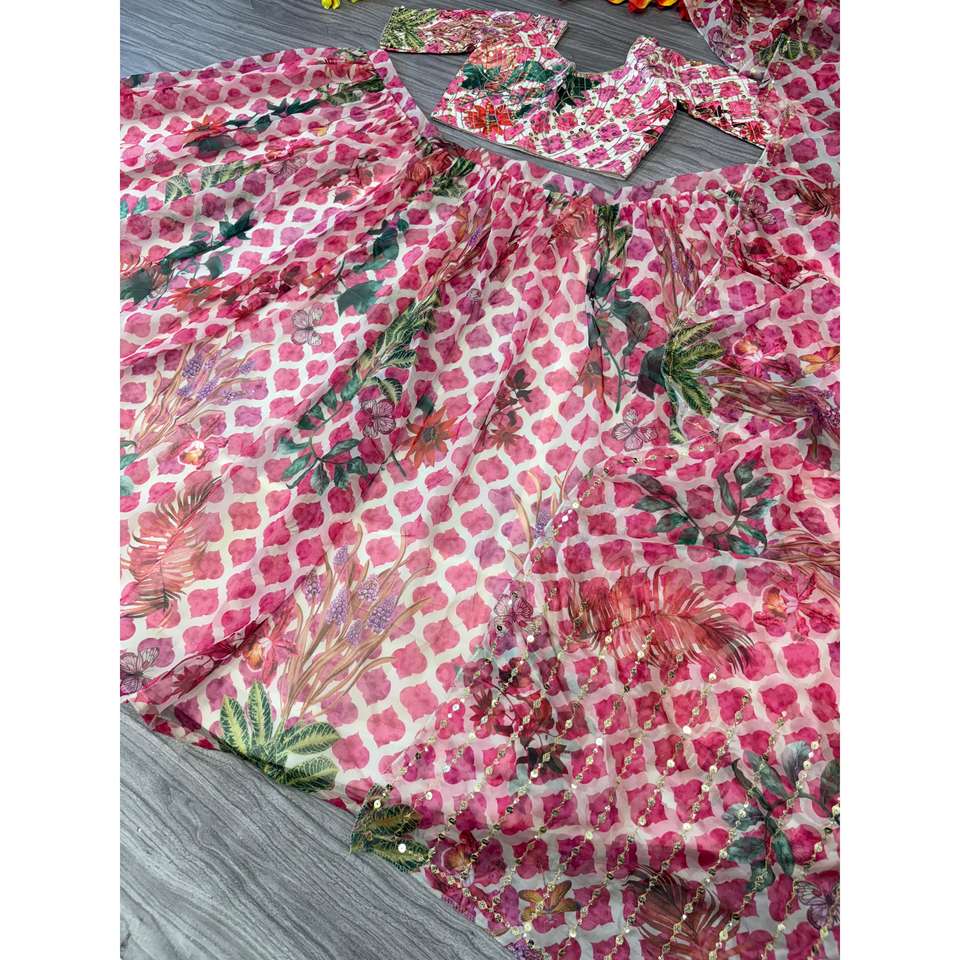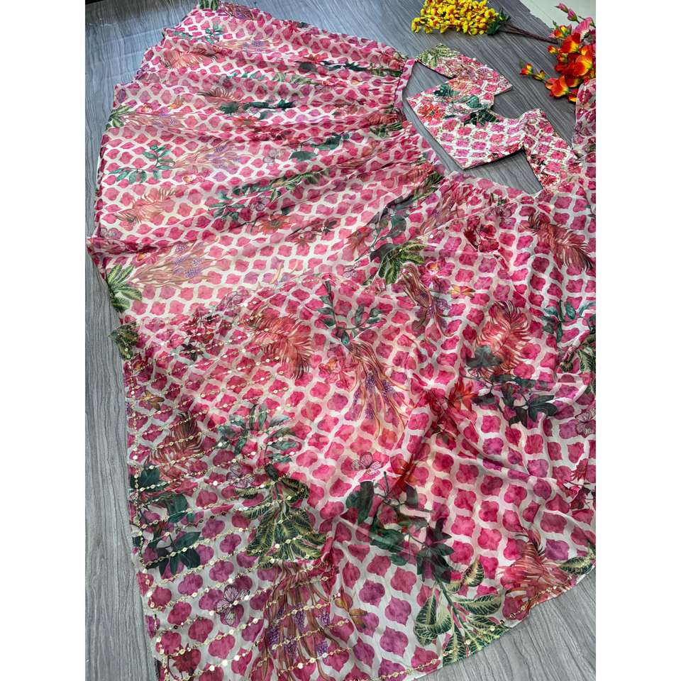 ชุดเลเฮนกาโชลีพิมพ์ลายดอกไม้สีแดง ไซส์ 2XL ของ Heera Creation Designer สำหรับงานปาร์ตี้และงานพรอม ชุดเดรสสไตล์บอลลีวูดสุดหรู
