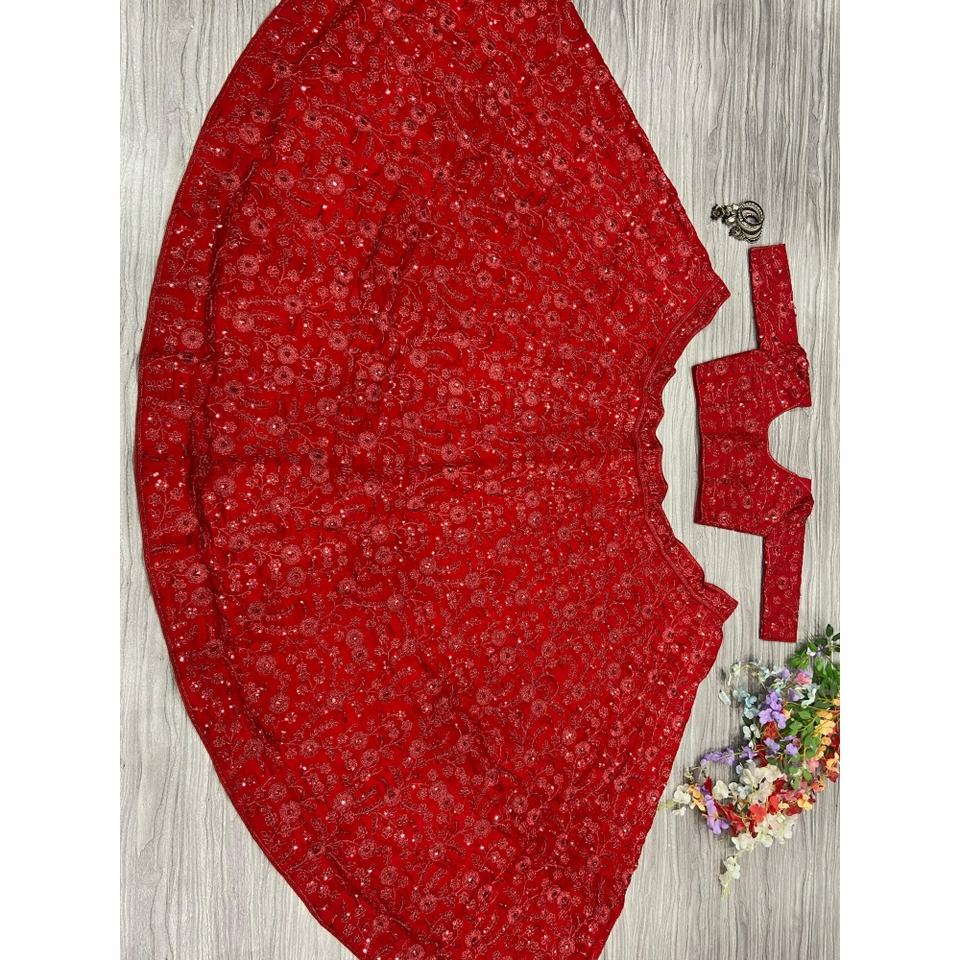 Lehenga choli 2XL สีแดงดีไซน์เนอร์อินเดียและปากีสถาน2000กรัม