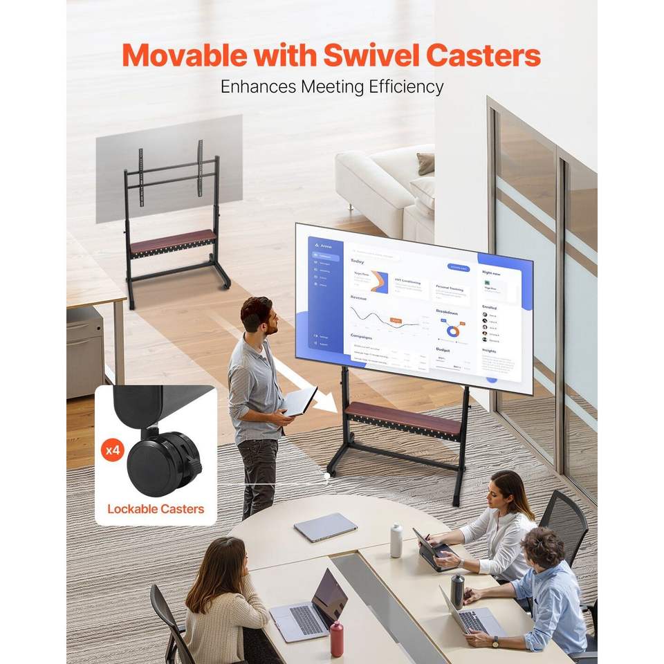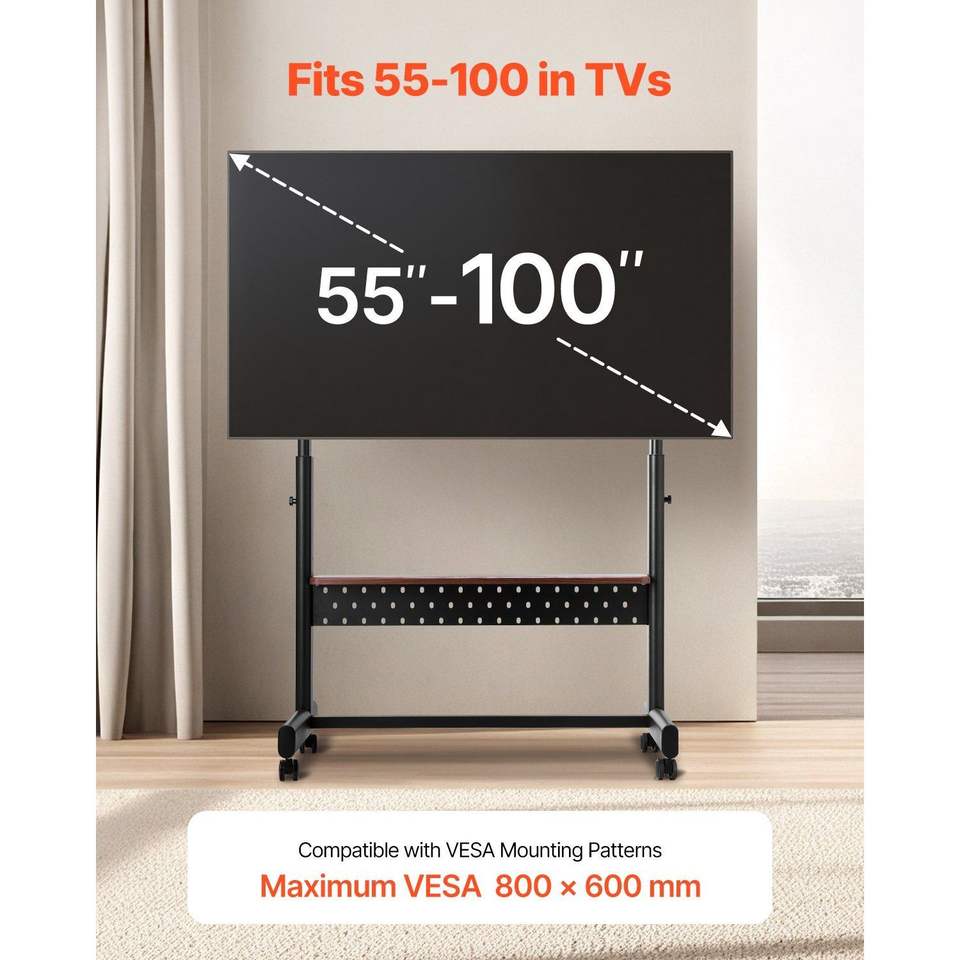 ขาตั้งทีวีแบบเคลื่อนย้ายได้ ปรับความสูงได้ สำหรับหน้าจอขนาด 55-100 นิ้ว พร้อมถาดวางของ 205 ลิตร และที่ยึดทีวี