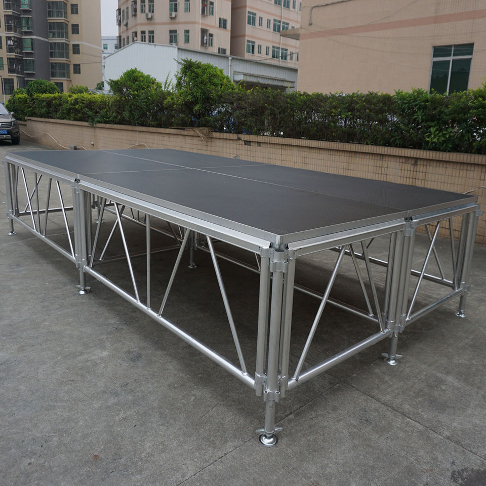 เวทีคอนเสิร์ตกลางแจ้งแบบพกพาปรับระดับความสูงได้ ทำจากอะลูมิเนียมและไม้ ประกอบง่าย พร้อมพื้นกันลื่น