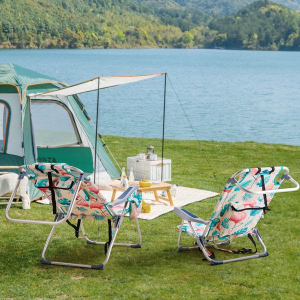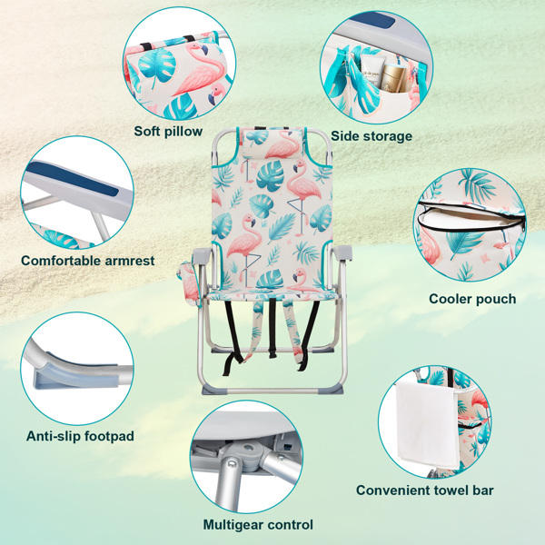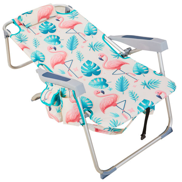 Heightened Oxford Cloth Silver White Aluminum Tube Bearing 100kg Beach Chair Flamingo