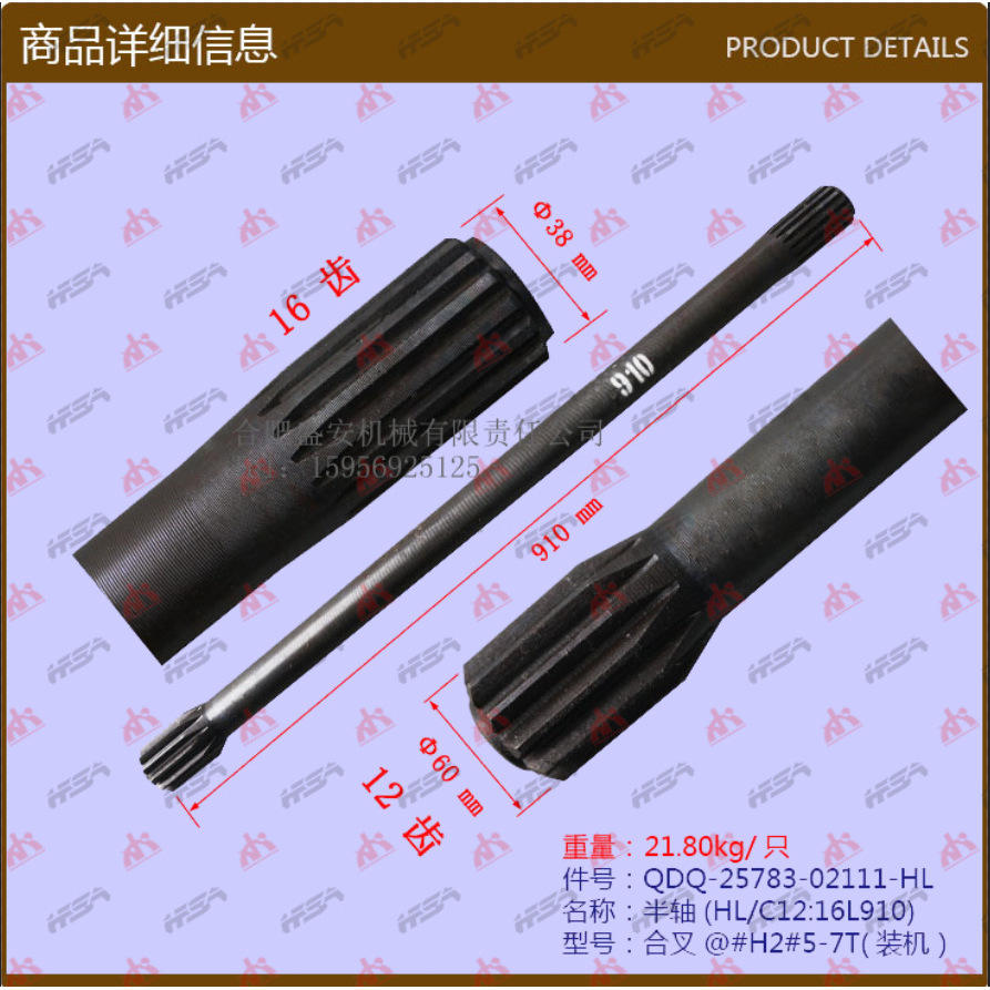 อะไหล่รถยก Hel เพลาขับครึ่งท่อน (HL/C12:16L910) เพลาขับ ข้อต่อตะเกียบ @H2 # 5-7T
