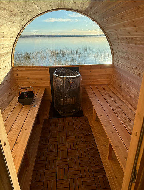 Helius Factory Supply Outdoor Red Cedar Barrel Sauna with Stove for Home Sauna Room